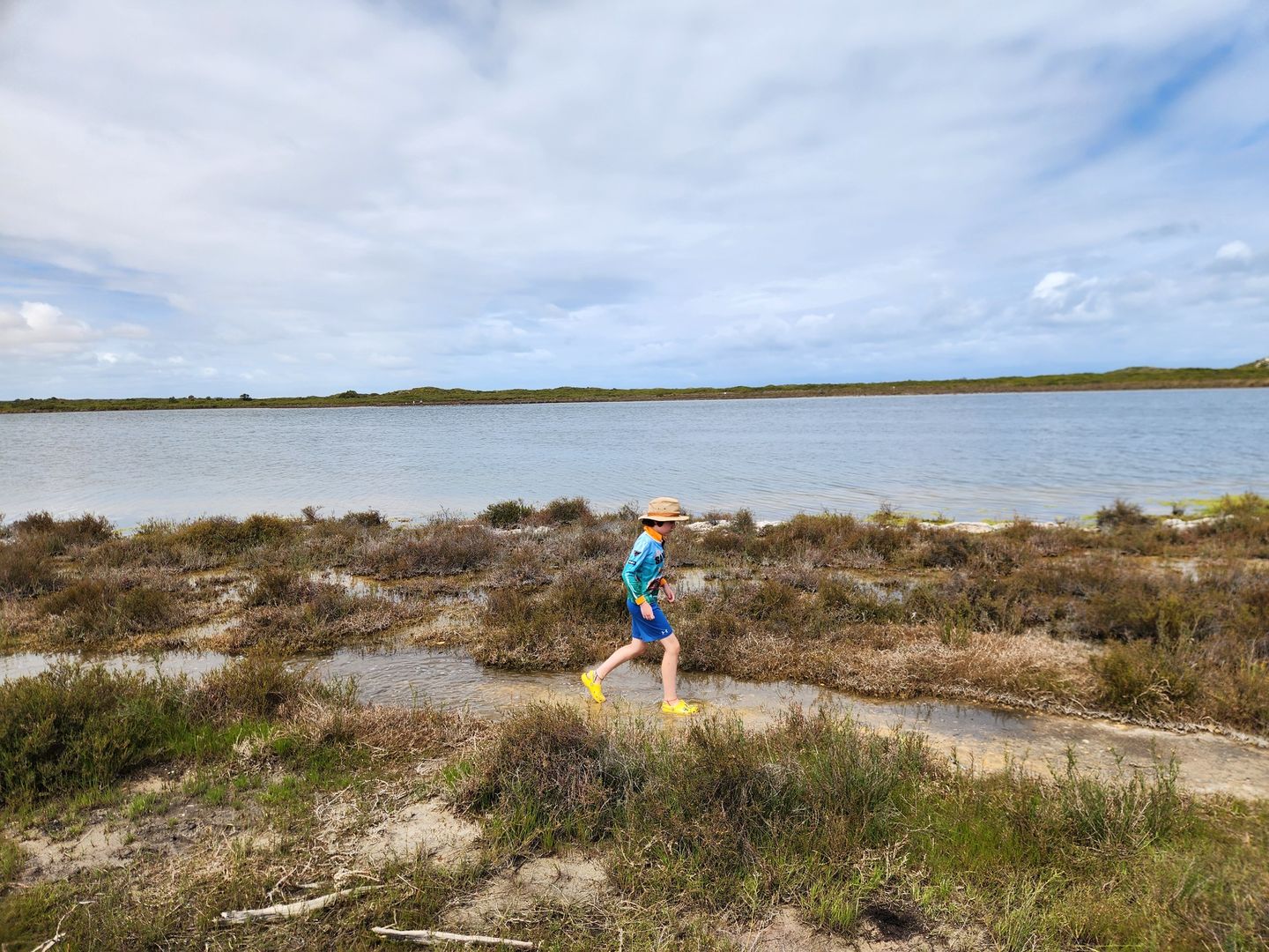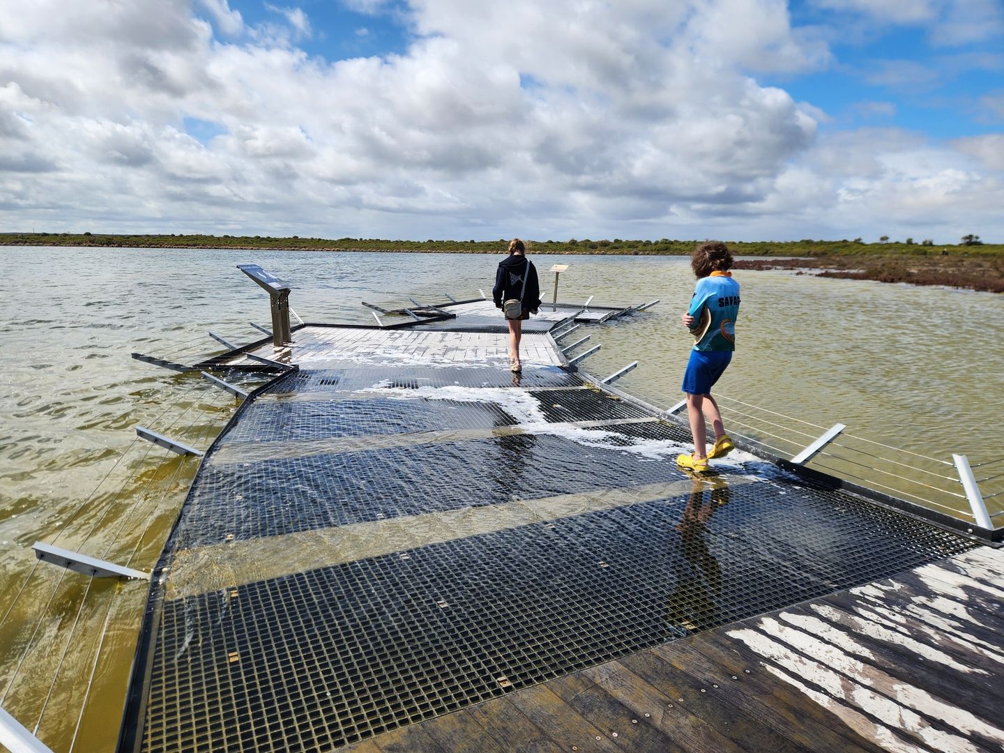 flooded boardwalk to try to see the stromatolites under the water. Unfortunately