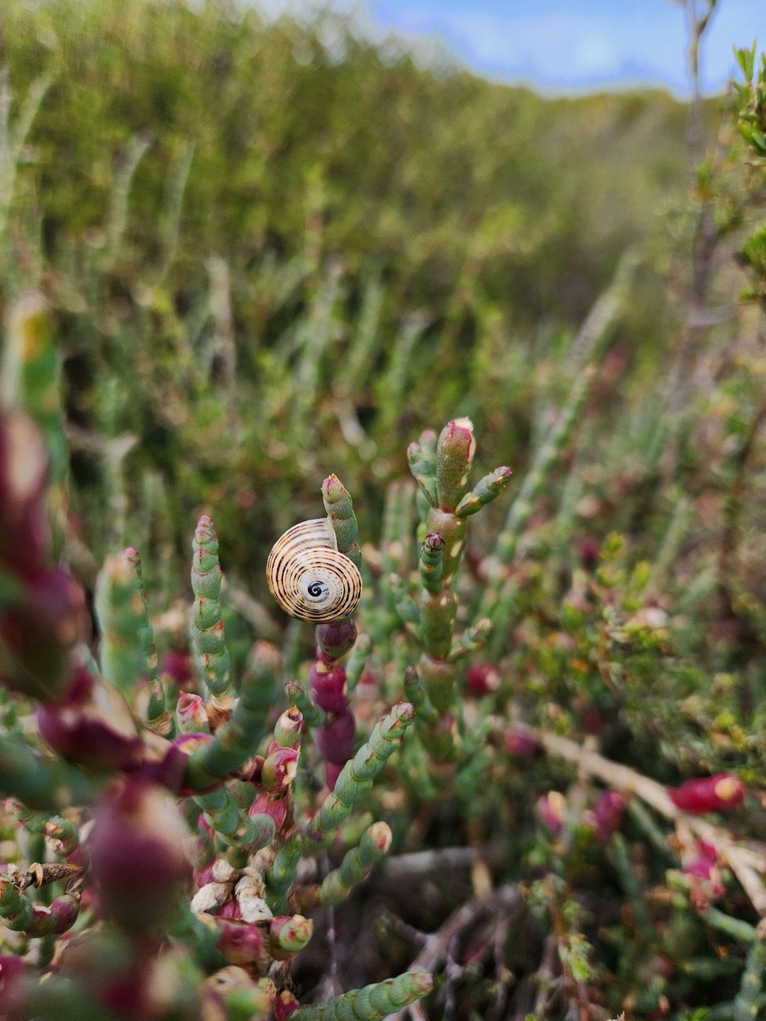 the grasses and scrubs - some with round shells other with long spiral ones.