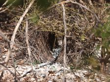 bower bird nest, a few blue tongue lizards and a large python under one of the