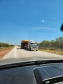 in spinifex and gum trees. We also passed more road trains today than we have in