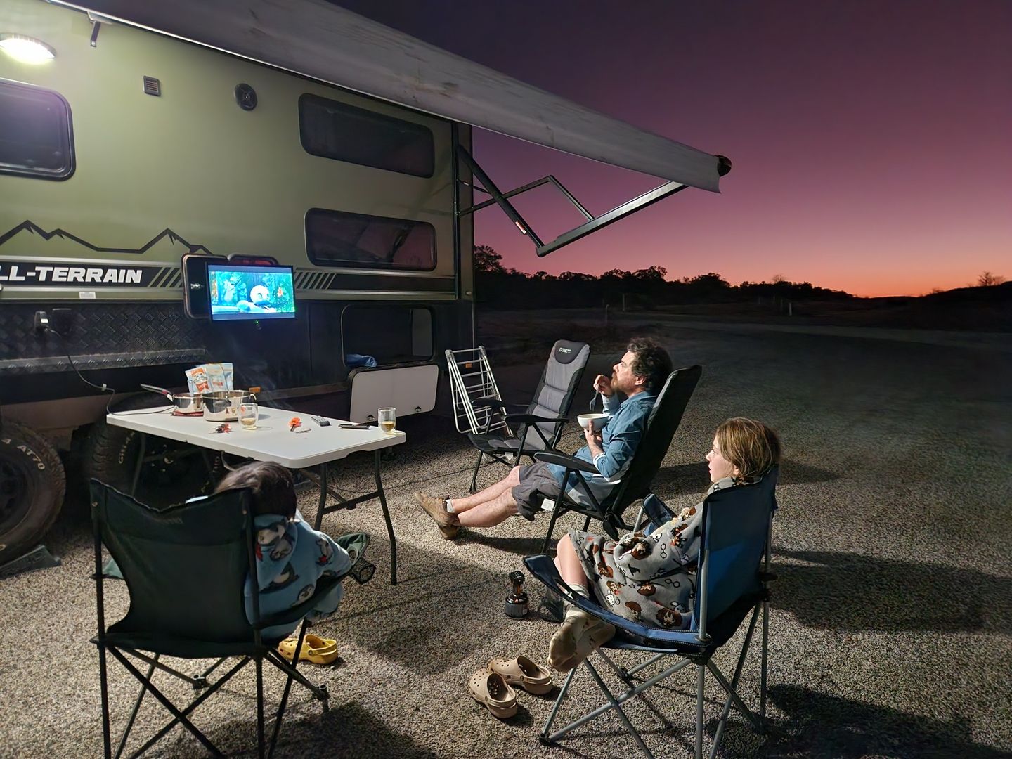 grab dinner from the food trucks. As it got dark we set up on the grassy area
