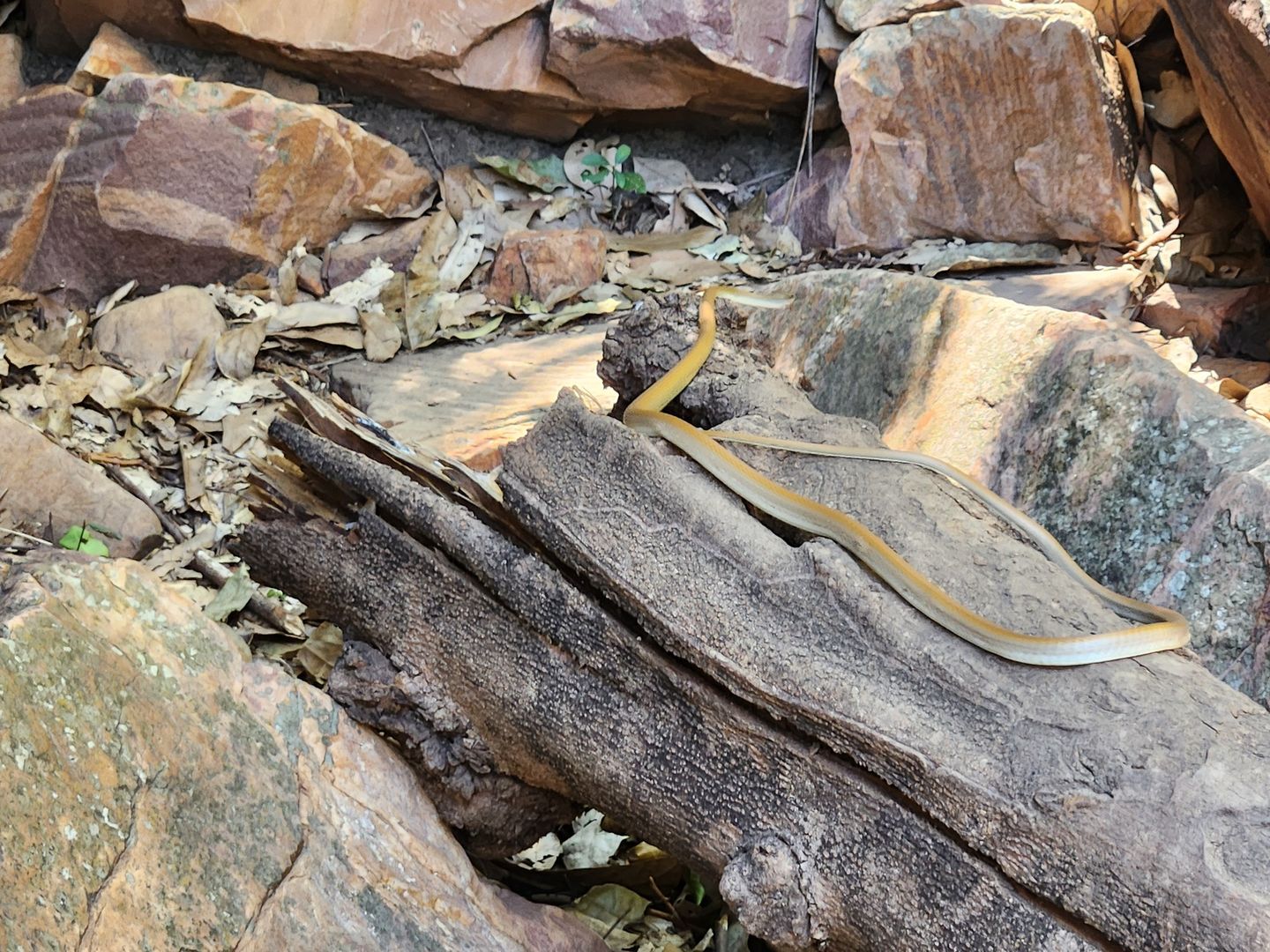 minutes earlier a green tree snake had "swum" across from the far shore straight