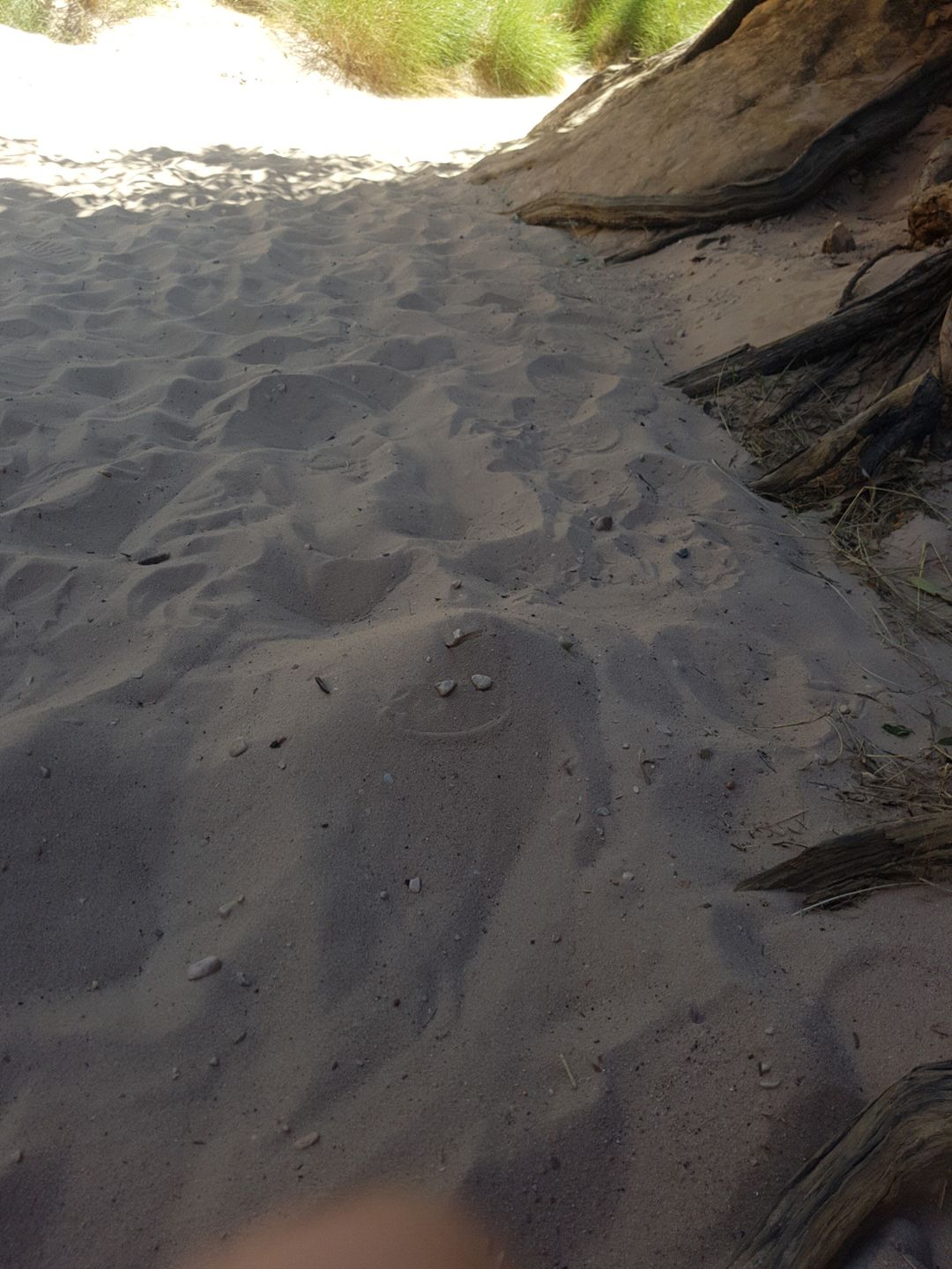 along the sandy creek beds. Theo stopped at every sandy section of the trail to