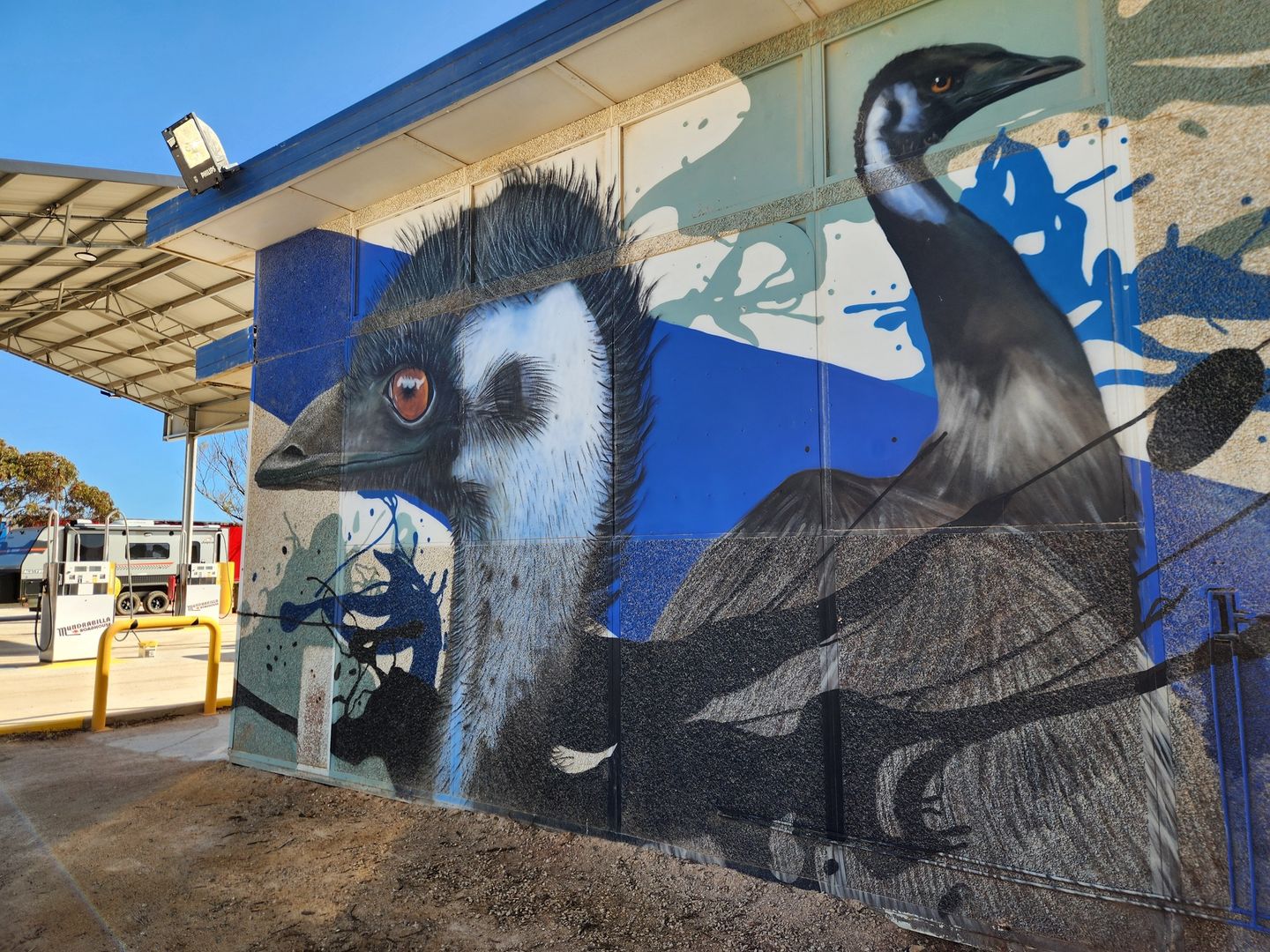 Mundrabilla Roadhouse - which has some beautiful emu murals.