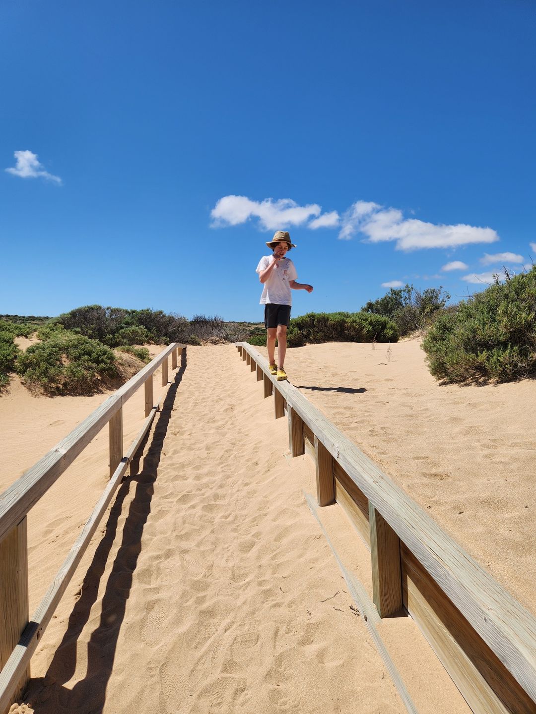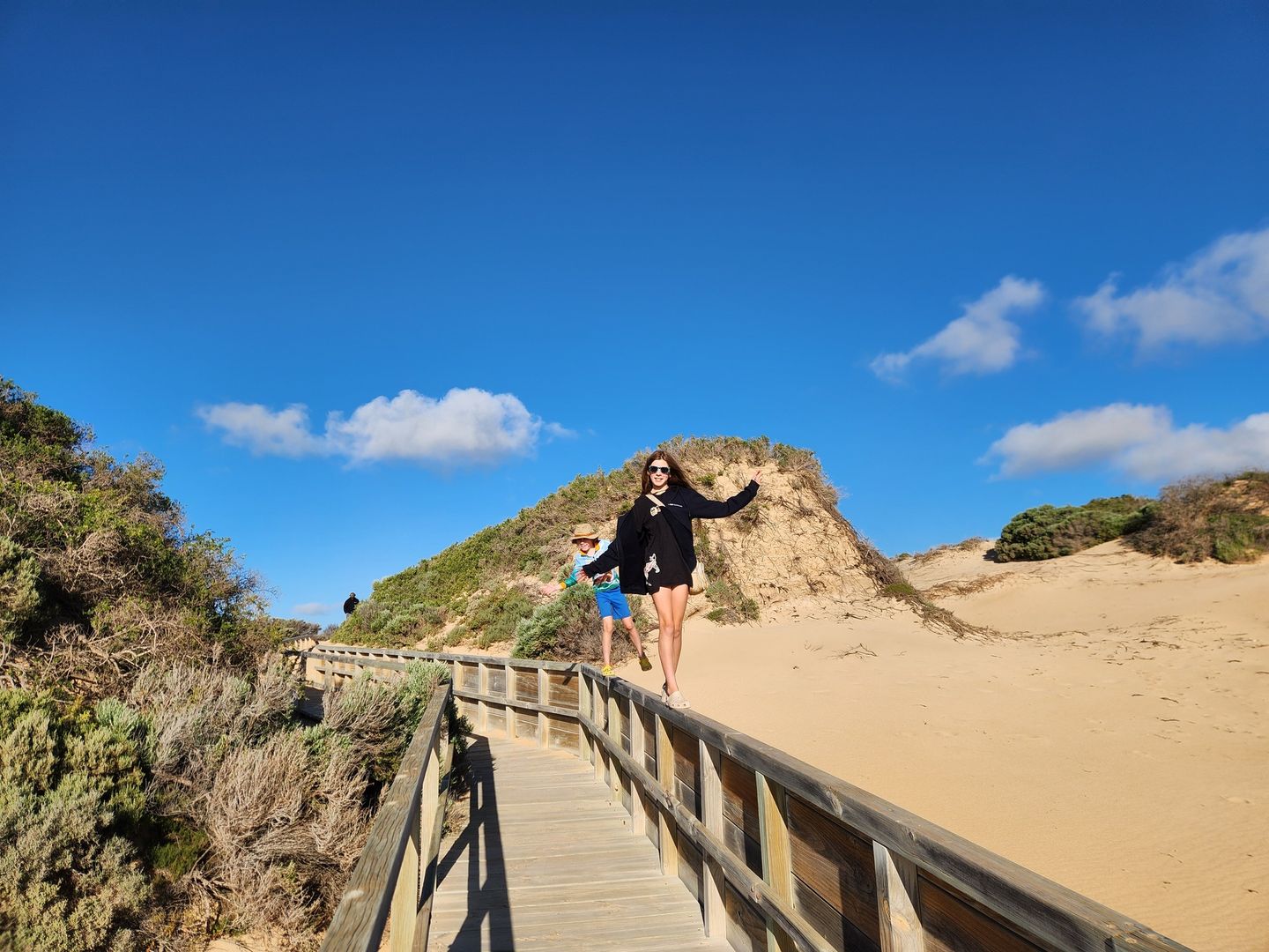 Bunda Cliffs and the sand dunes to the east. While walking along the kids
