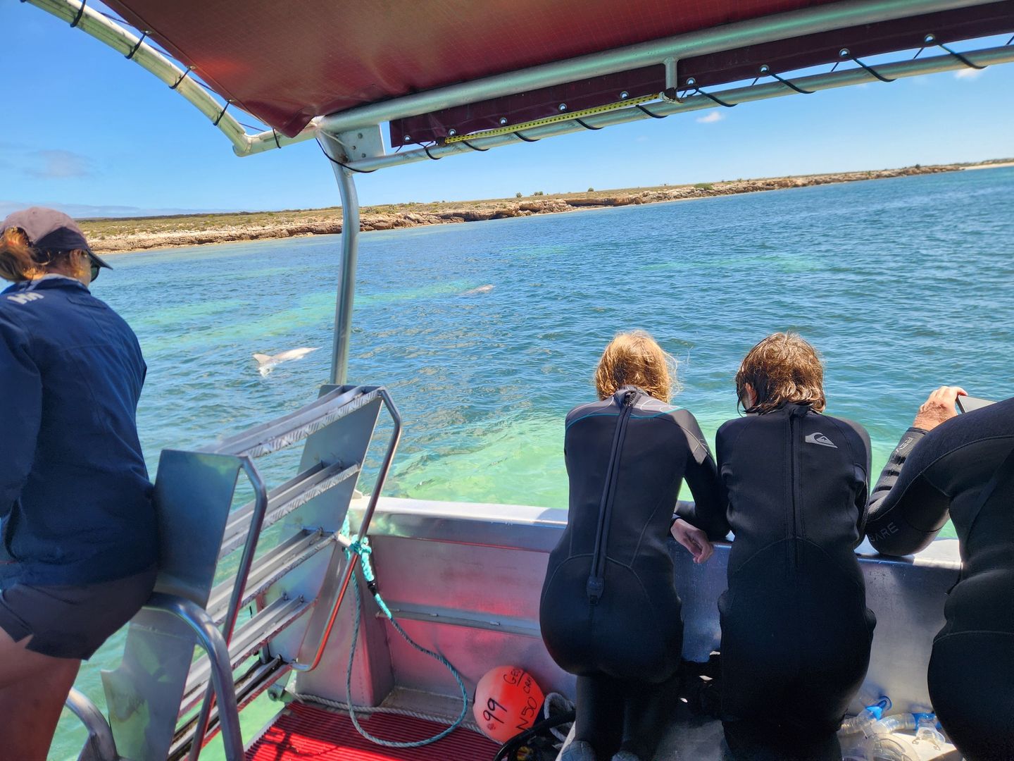 back some dolphins followed us for a bit, swimming under and around the boat!