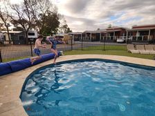 As it got above 20°C today, the kids could not resist getting their first swim in. It was a lot colder than they were expecting in the caravan park pool!!