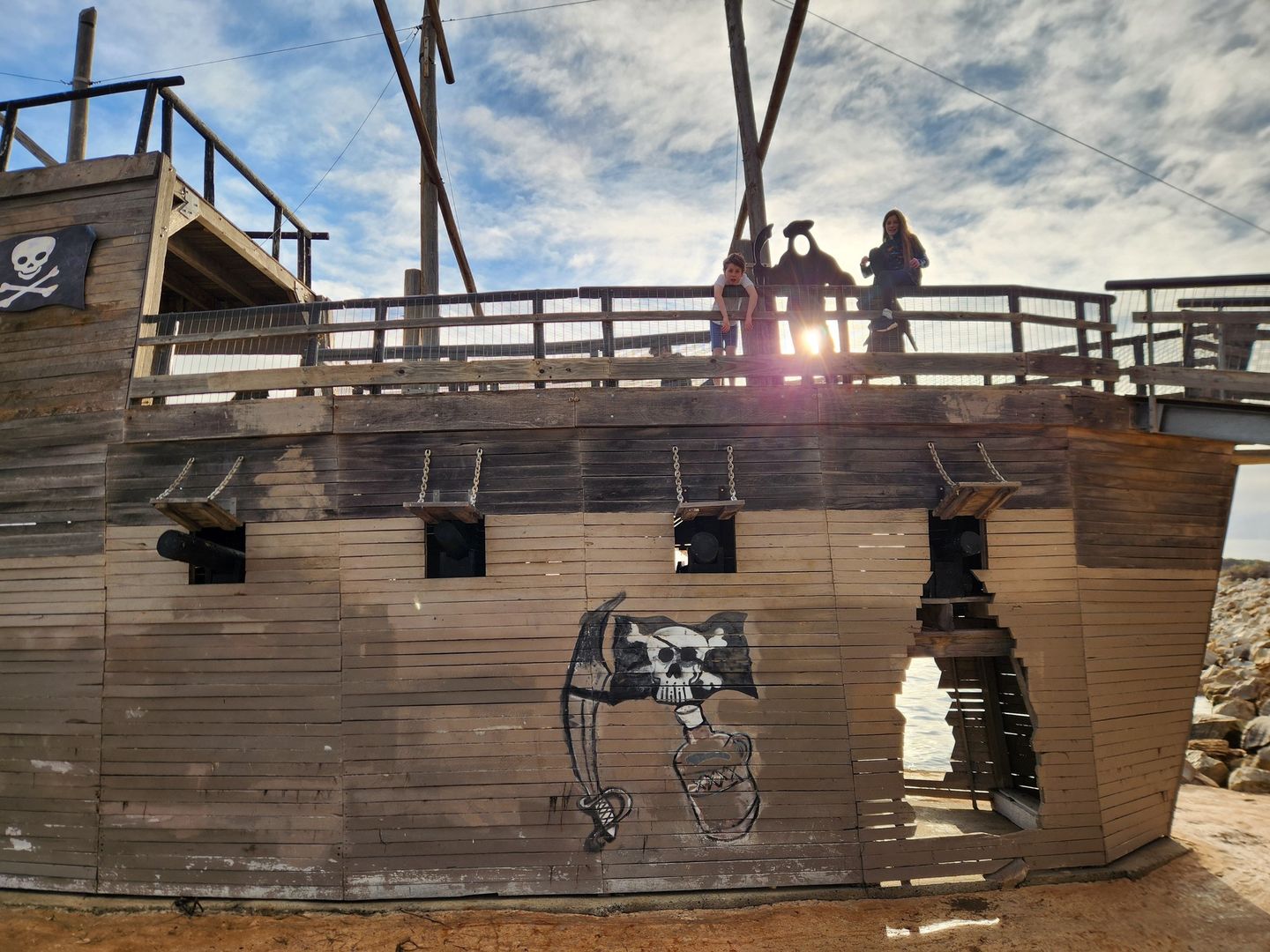 Finally a dry day again. So we headed out to township of St Kilda, north of Adelaide, to check out a super cool playground. We have never seen so many slides in one place. Sadly the slides were not that slippery. However, the Pirate Ship and zip line were big hits.