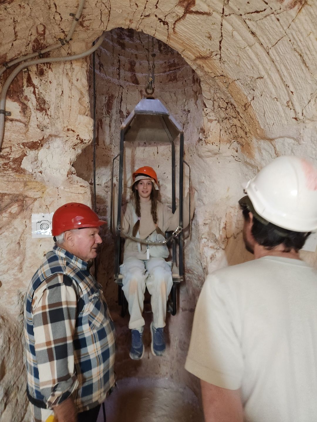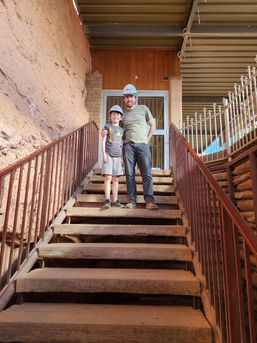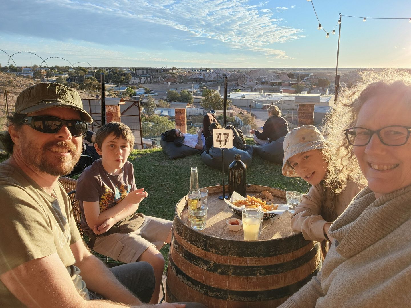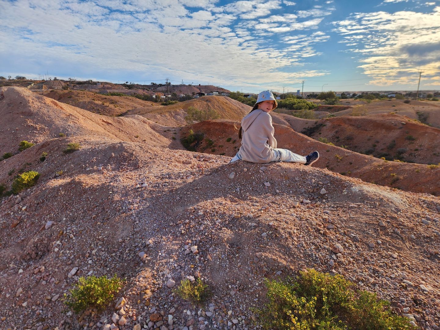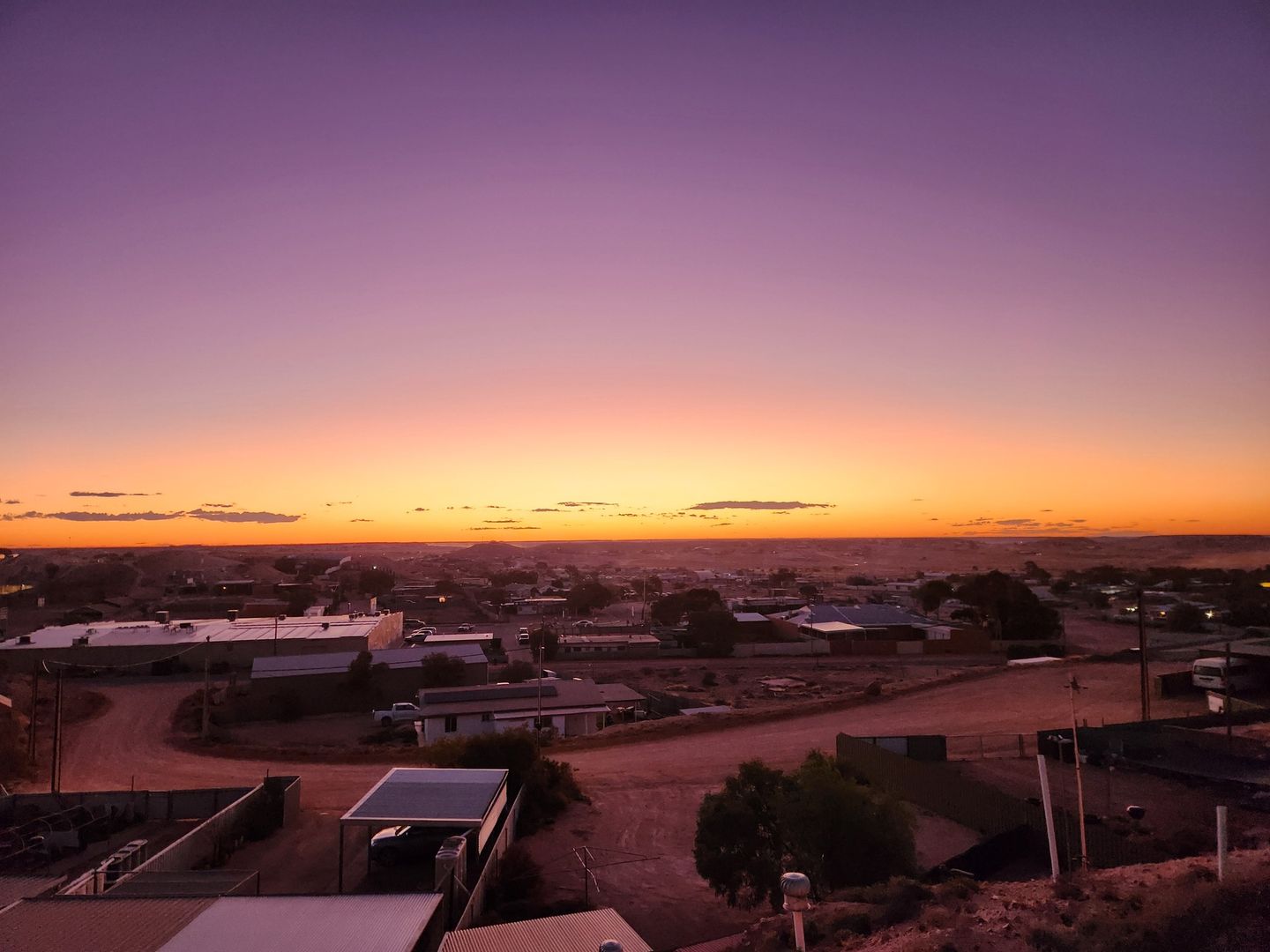 Then in the afternoon we toured the Old Timers Mine. It was a self guided tour through an old opal mine followed by several rooms of a house that the previous owners of the mine lived in. To watch the sunset we drove up to the "Big Winch" and its attached cafe for drinks and NY Times puzzles while the sun set over the dessert.