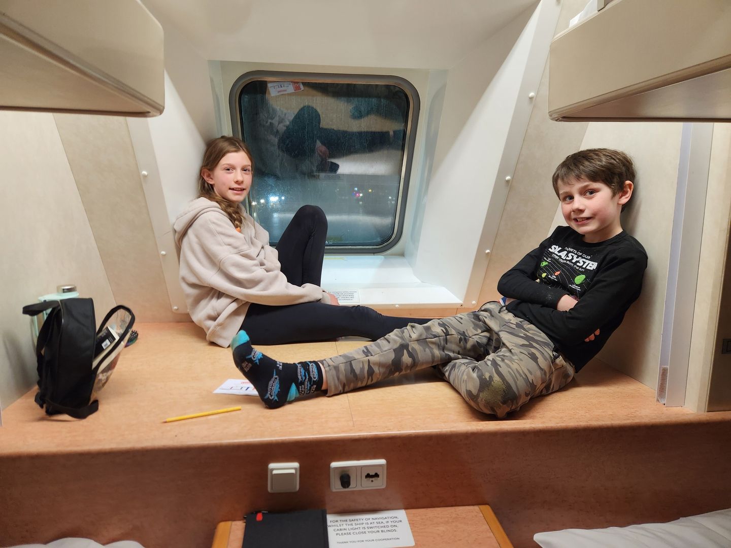 This was the first time any of us have slept in one of the Spirit cabins on a crossing. The kids had a great time exploring the ship, though once they found the video game room they did not get much further... Eventually we made it to bed and lucked out with a very calm crossing.