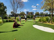 So we got back on the train to Optus Stadium where mini golf was. At mini golf
