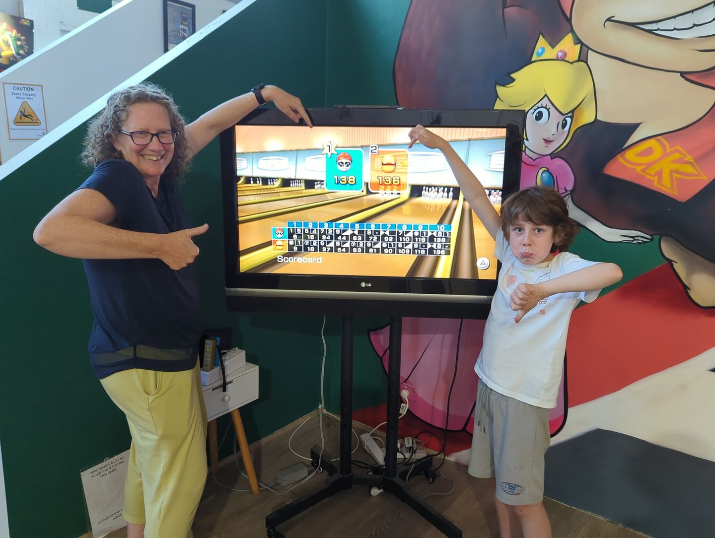 mum beat me in wii bowling by one point.