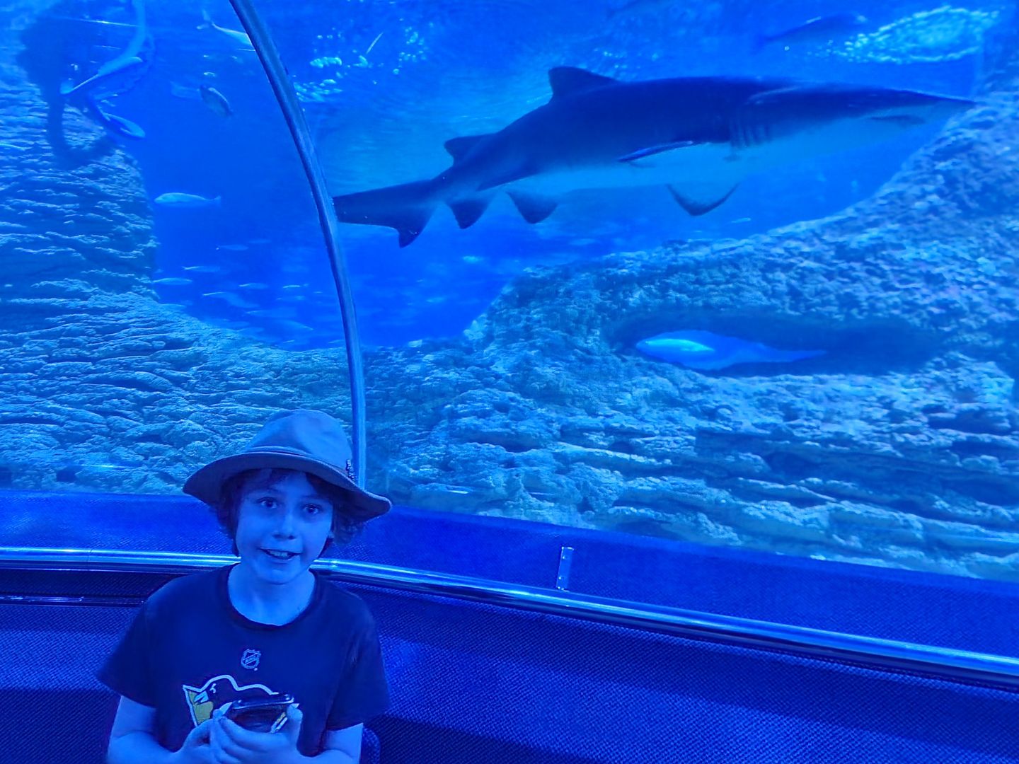 this moving pathway that went around and under a big tank with lots of sharks,