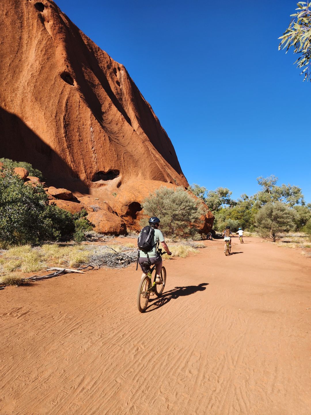 After lunch we headed to the Uluru visitor centre to rent bikes and ride the 10km around the rock. This was a lot of fun even if it was rather warm doing it in the late afternoon.